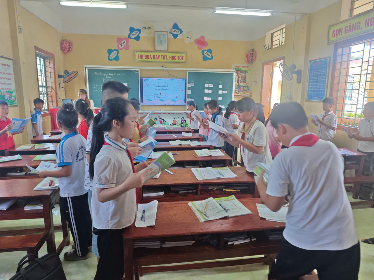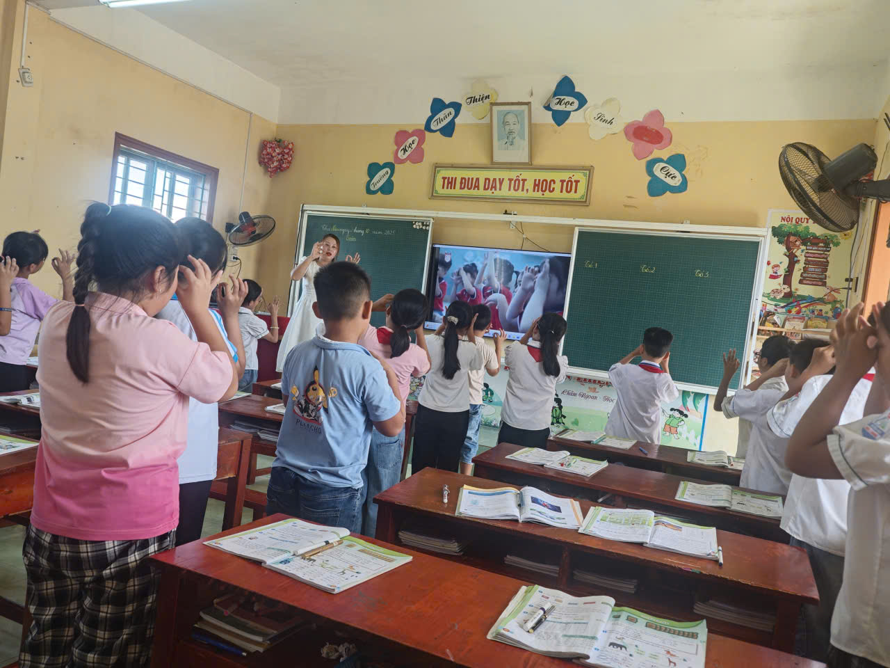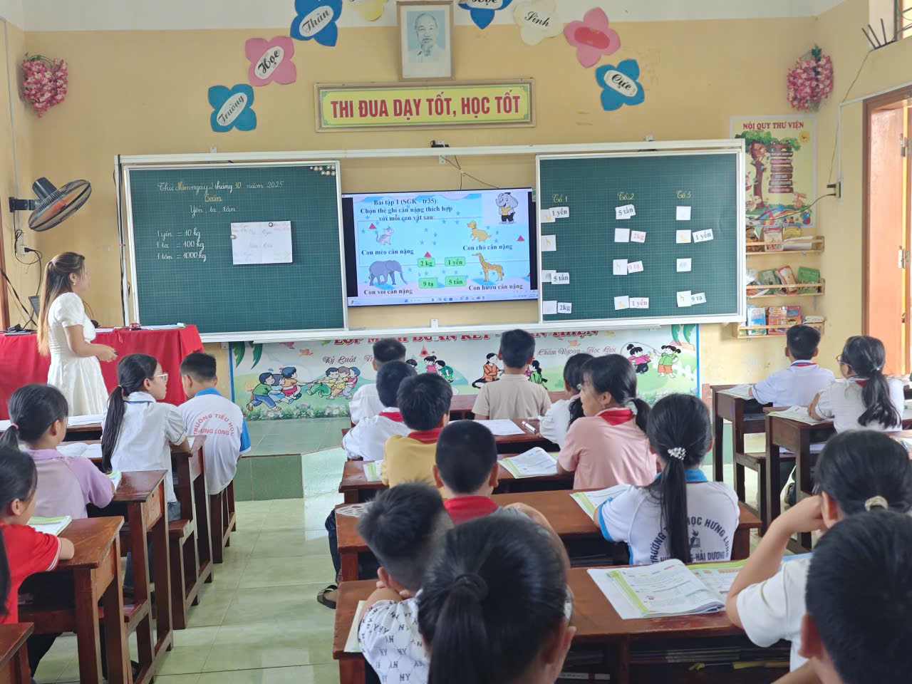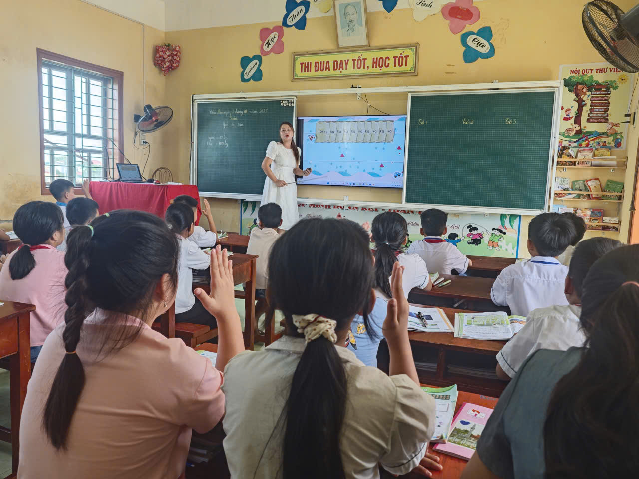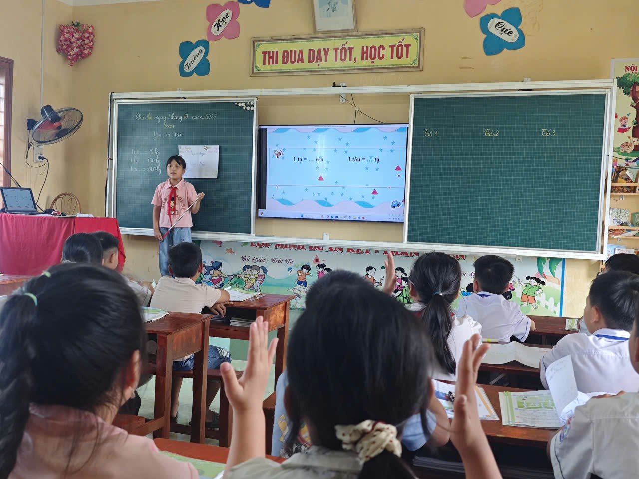 Thực hiện kế hoạch nhiệm vụ năm học 2025-2026 của trường Tiểu học Hưng Long, hôm nay, thứ năm ngày 2 tháng 10 năm 2025, tổ chuyên môn 4-5 đã tổ chức chuyên đề Nâng cao hứng thú học tập môn Toán cho học sinh lớp 4 thông qua ứng dụng công nghệ AI vào dạy học. Tiết dạy chuyên đề do cô giáo Vũ Thị Mai thực hiện, dạy tại lớp 4B. Đến dự chuyên đề có đông đủ các thầy cô giáo trong trường. Trong tiết dạy, trí tuệ nhân tạo AI đã được ứng dụng một cách linh hoạt, phù hợp với tình hình thực tế HS và điều kiện của nhà trường như sử dụng phần mềm suno tạo bài hát, canva tạo hình ảnh, vedu, vbee, hailuo,… tạo video ngắn, gammar tạo các slide…. Đặc biệt, tiết học còn có sự xuất hiện của Tí Voi, một nhân vật AI đồng hành cùng các bạn HS trong suốt tiết học càng làm tăng hứng thú cho HS. Không chỉ ứng dụng AI, cô giáo đã vận dụng linh hoạt các kĩ thuật dạy học tích cực như Khăn trải bàn, Xích xe tăng hay kĩ thuật tổ chức trò chơi làm cho tiết học trở nên sôi động, tất cả HS được phát triển năng lực của mình một cách chủ động, hào hứng. Không chỉ với HS, qua chuyên đề, các GV cũng thấy được ích lợi của việc ứng dụng AI trong thiết kế bài giảng và áp dụng vào các tiết học, hiểu rõ hơn cách vận dụng các kĩ thuật dạy học tích cực một cách phù hợp. Chuyên đề được đánh giá thiết thực và tiết dạy thành công. Sau tiết dạy, các đ/c GV đã họp rút kinh nghiệm để mỗi GV vận dụng chuyên đề hiệu quả theo tình hình thực tế lớp chủ nhiệm và môn học mình đảm nhiệm.
