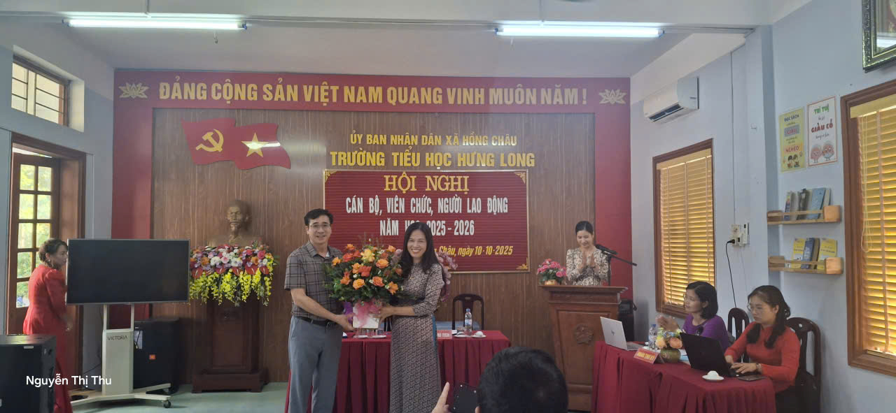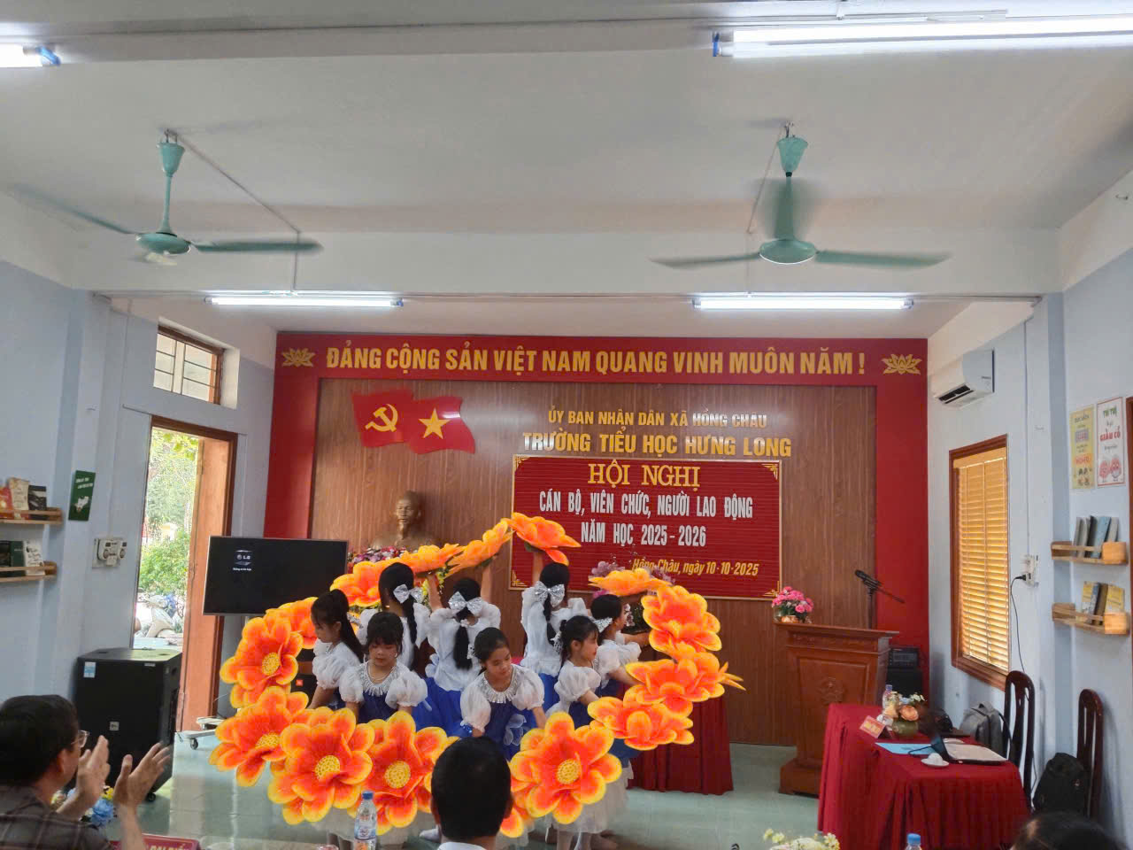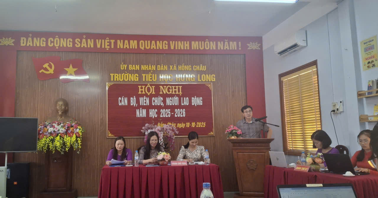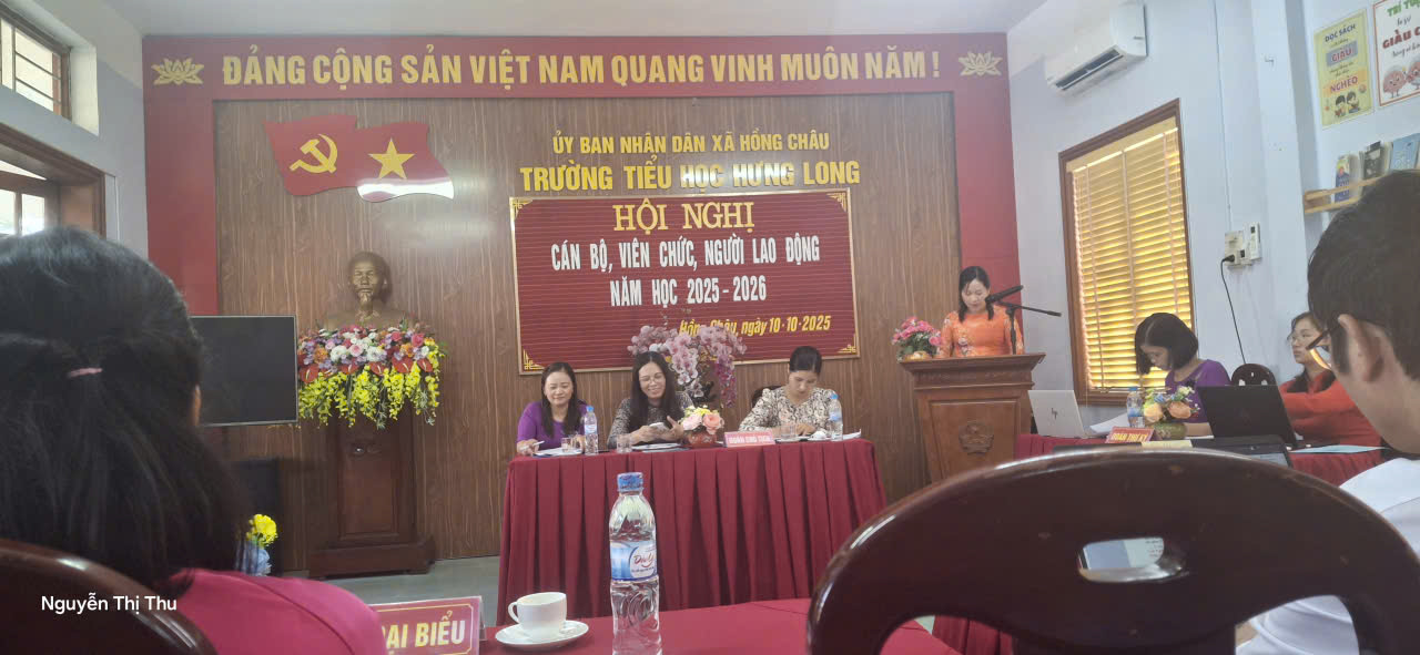 Thực hiện công văn số 308 ngày 26 tháng 9 của UBND xã Hồng Châu V/v tổ chức hội nghị cán bộ, viên chức, người lao động năm học 2025-2026; chiều ngày 10 tháng 10 năm 2025, Trường Tiểu học Hưng Long đã long trọng tổ chức hội nghị cán bộ, viên chức, người lao động năm học 2025 - 2026.