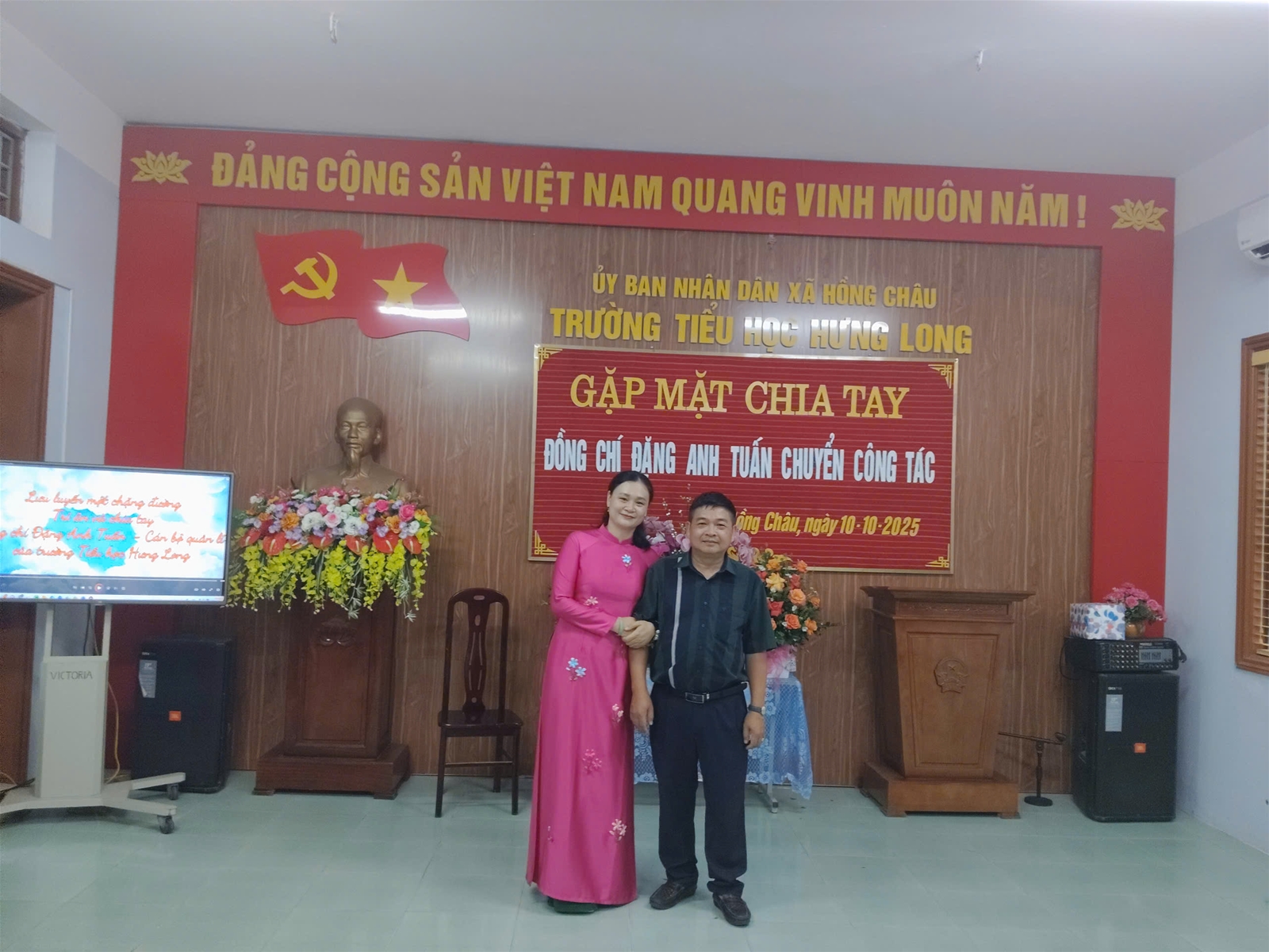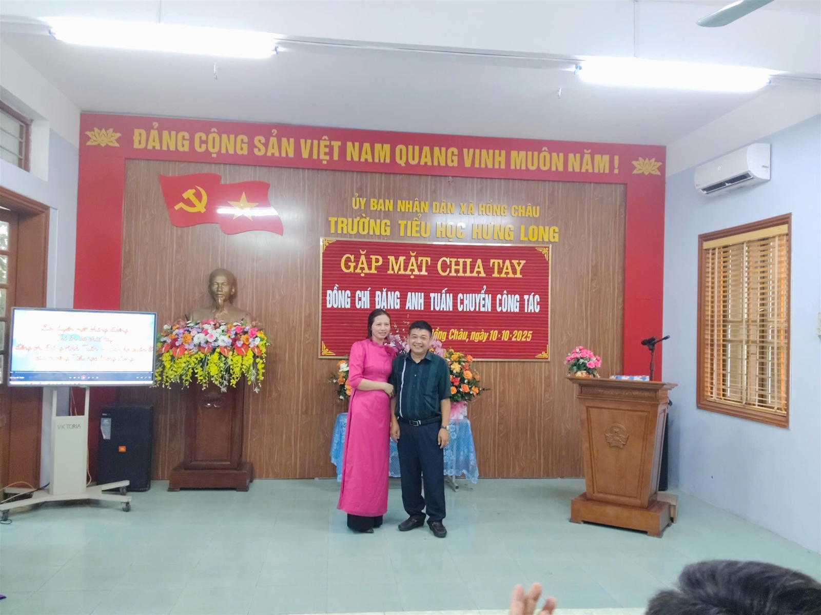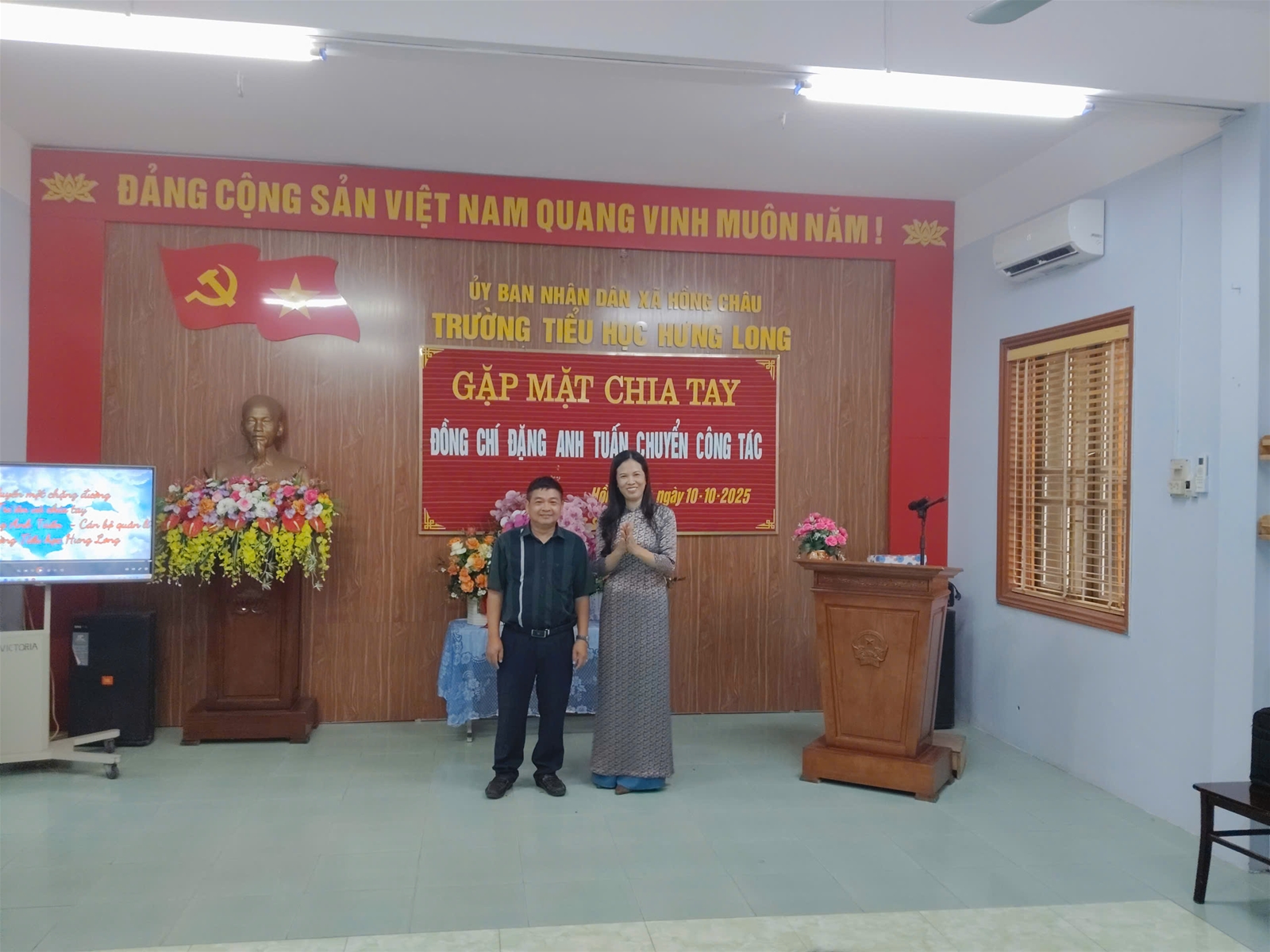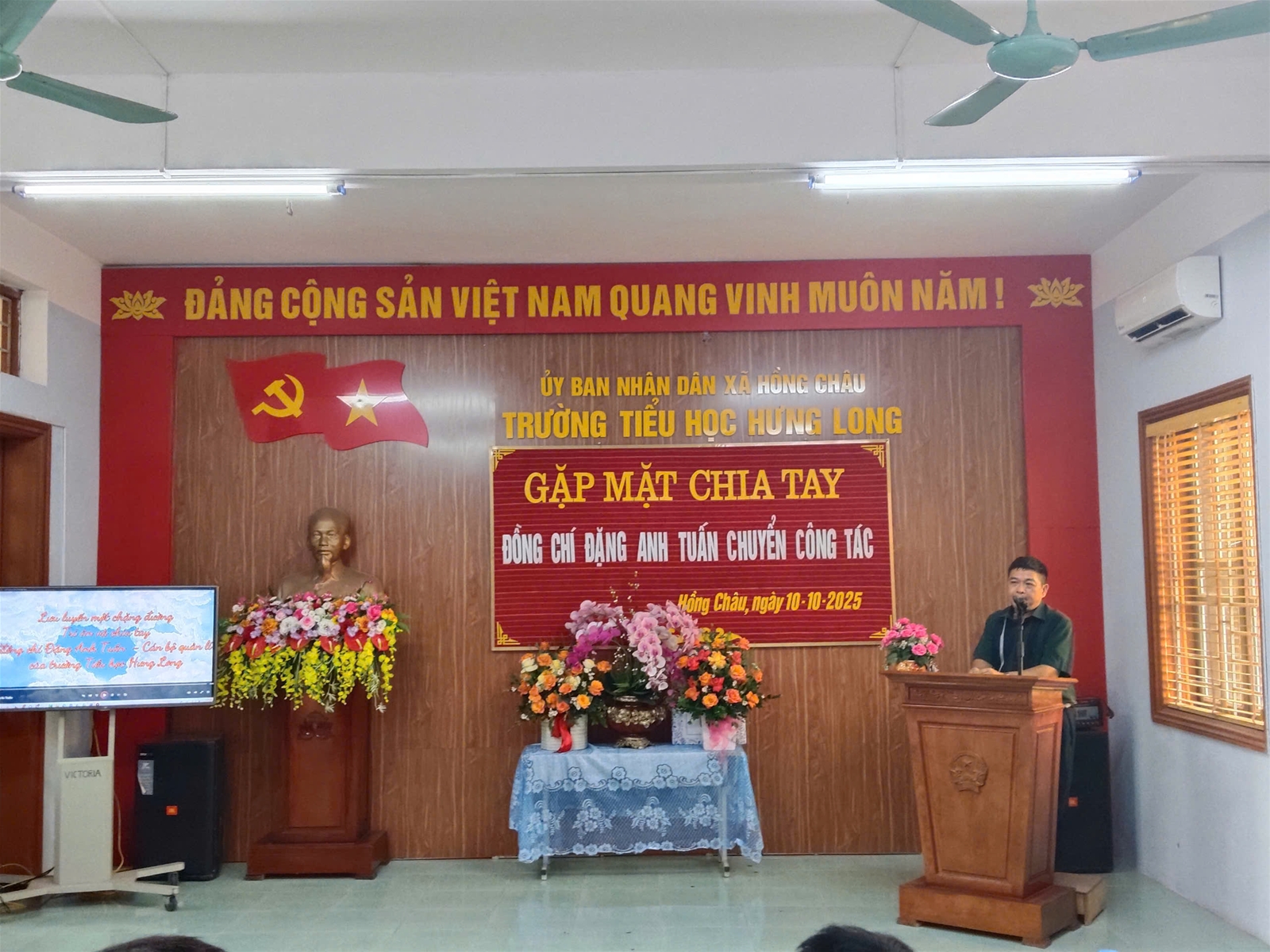 Hôm nay, ngày 10 tháng 10 năm 2025 trong không khí hân hoan của năm học mới 2025-2026, trường Tiểu học Hưng Long tổ chức buổi chia tay đầy lưu luyến với thầy Đặng Anh Tuấn nguyên PHT nhà trường. Tập thể cán bộ, giáo viên, nhân viên và học sinh trường Tiểu học Hưng Long xin được bày tỏ lòng tri ân sâu sắc đến thầy- người thầy - người đồng nghiệp, người lãnh đạo gần gũi, tận tâm đã gắn bó, cống hiến hết mình cho mái trường tiểu học Hưng Long thân yêu trong suốt 25 năm qua.