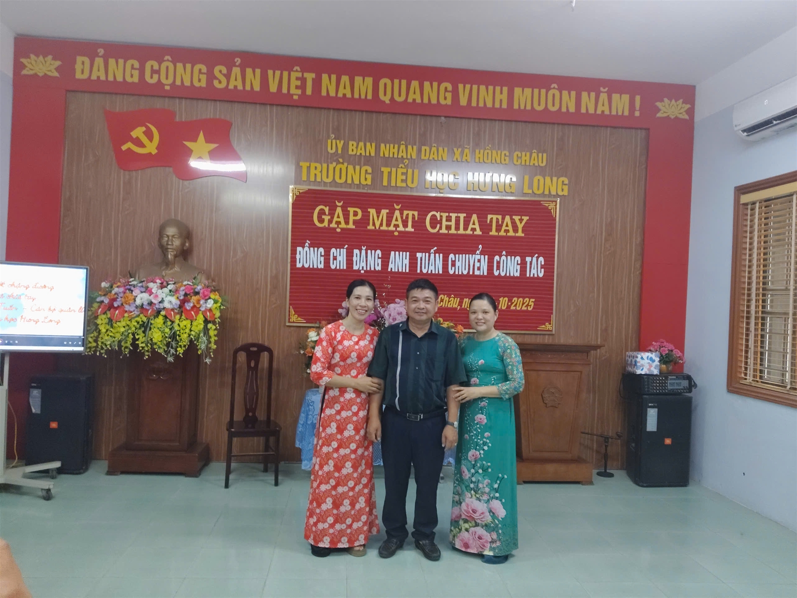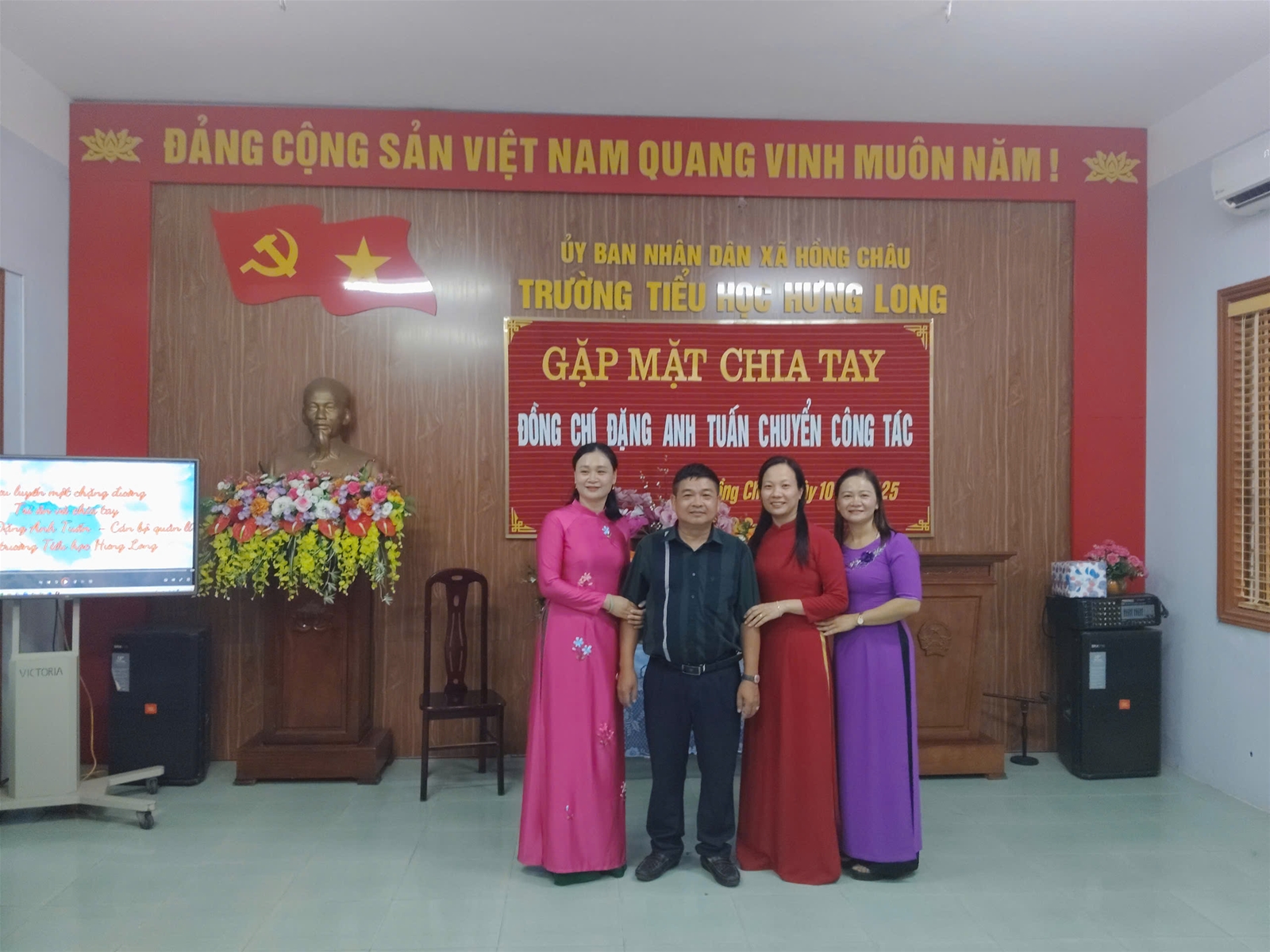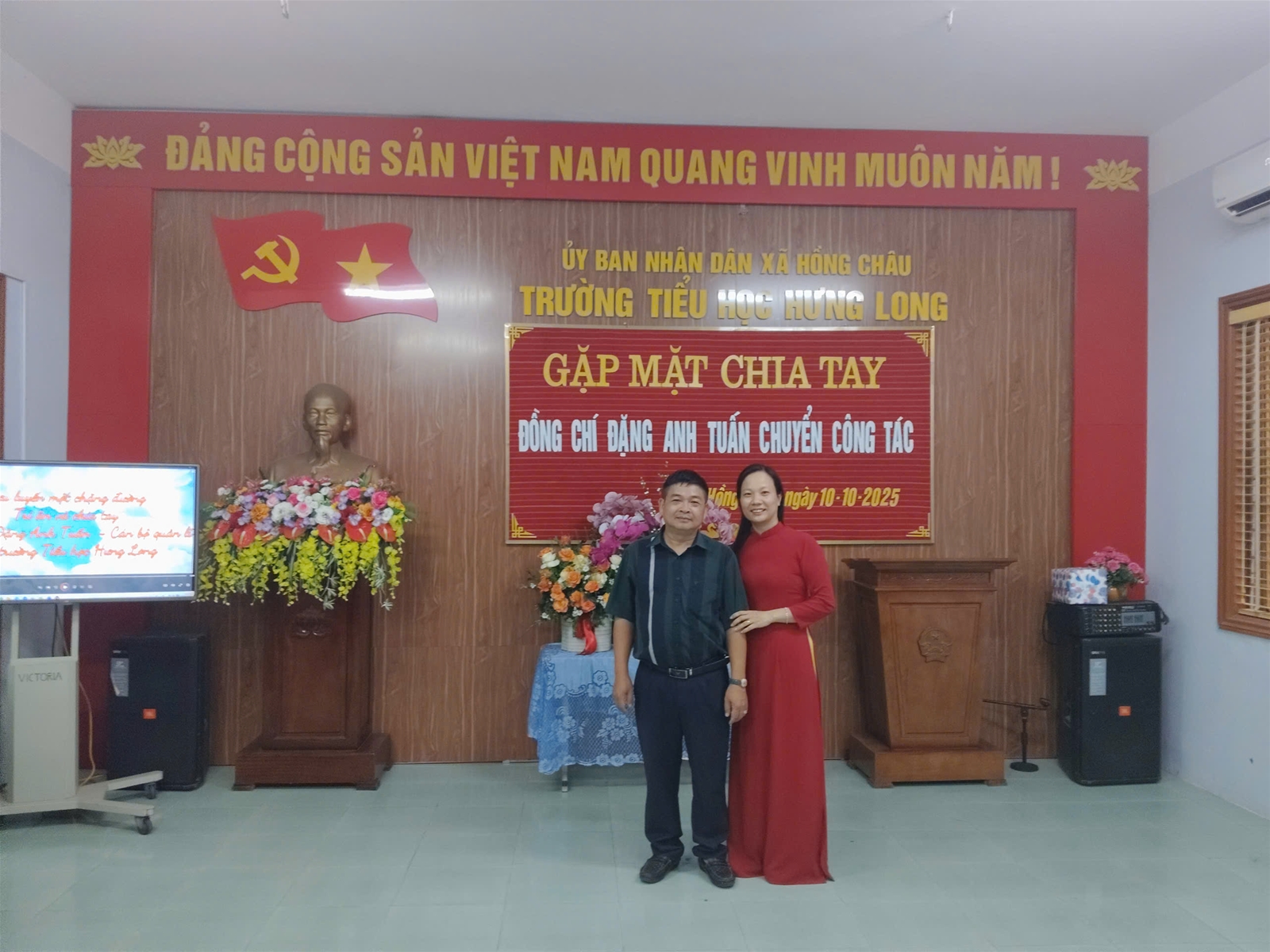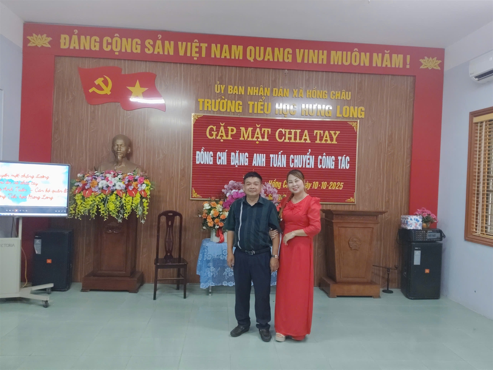 Hôm nay, ngày 10 tháng 10 năm 2025 trong không khí hân hoan của năm học mới 2025-2026, trường Tiểu học Hưng Long tổ chức buổi chia tay đầy lưu luyến với thầy Đặng Anh Tuấn nguyên PHT nhà trường. Tập thể cán bộ, giáo viên, nhân viên và học sinh trường Tiểu học Hưng Long xin được bày tỏ lòng tri ân sâu sắc đến thầy- người thầy - người đồng nghiệp, người lãnh đạo gần gũi, tận tâm đã gắn bó, cống hiến hết mình cho mái trường tiểu học Hưng Long thân yêu trong suốt 25 năm qua.