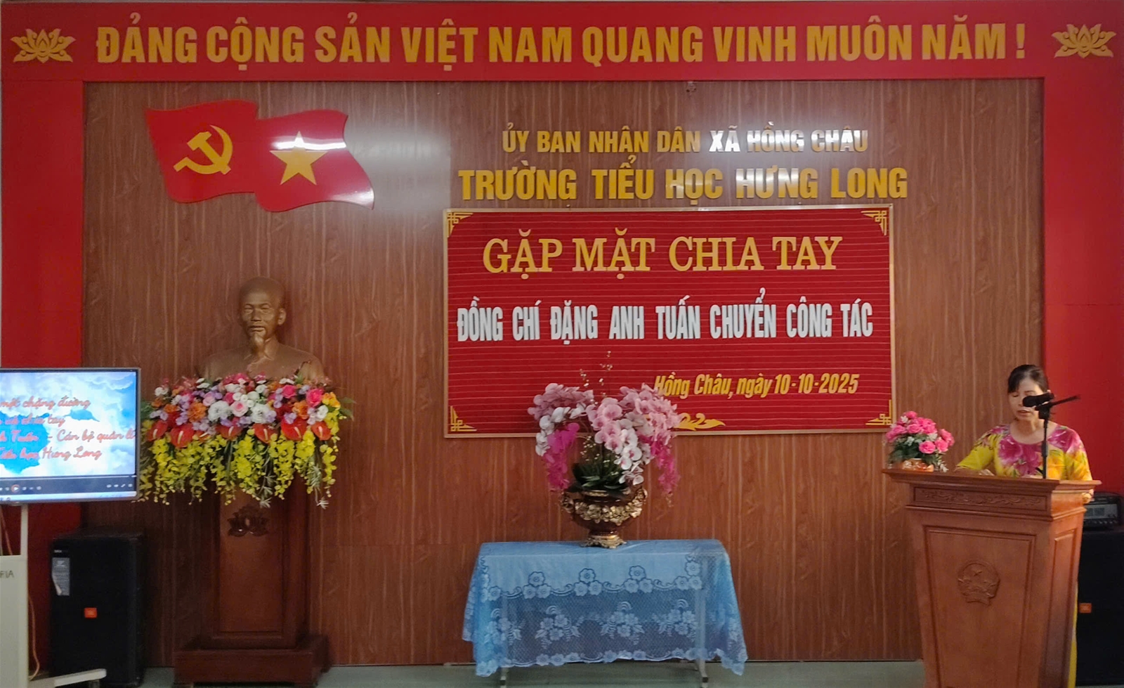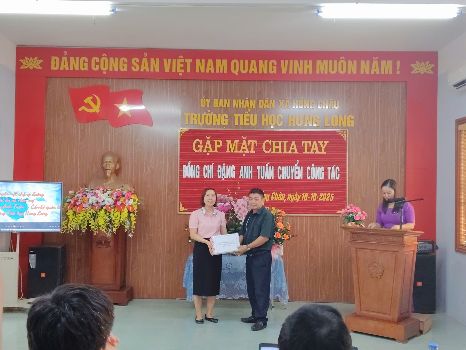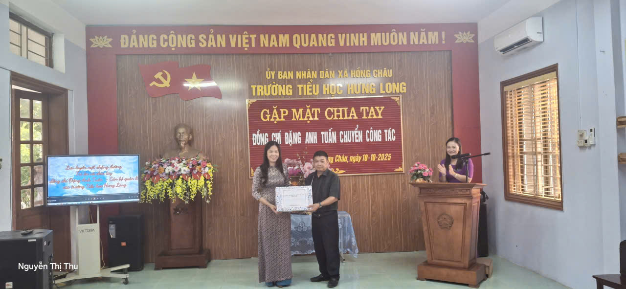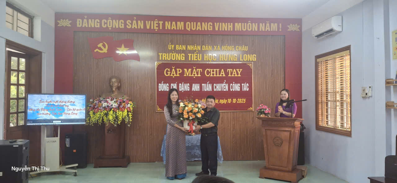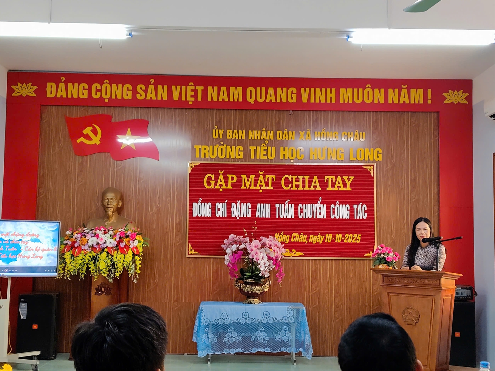 Hôm nay, ngày 10 tháng 10 năm 2025 trong không khí hân hoan của năm học mới 2025-2026, trường Tiểu học Hưng Long tổ chức buổi chia tay đầy lưu luyến với thầy Đặng Anh Tuấn nguyên PHT nhà trường. Tập thể cán bộ, giáo viên, nhân viên và học sinh trường Tiểu học Hưng Long xin được bày tỏ lòng tri ân sâu sắc đến thầy- người thầy - người đồng nghiệp, người lãnh đạo gần gũi, tận tâm đã gắn bó, cống hiến hết mình cho mái trường tiểu học Hưng Long thân yêu trong suốt 25 năm qua.