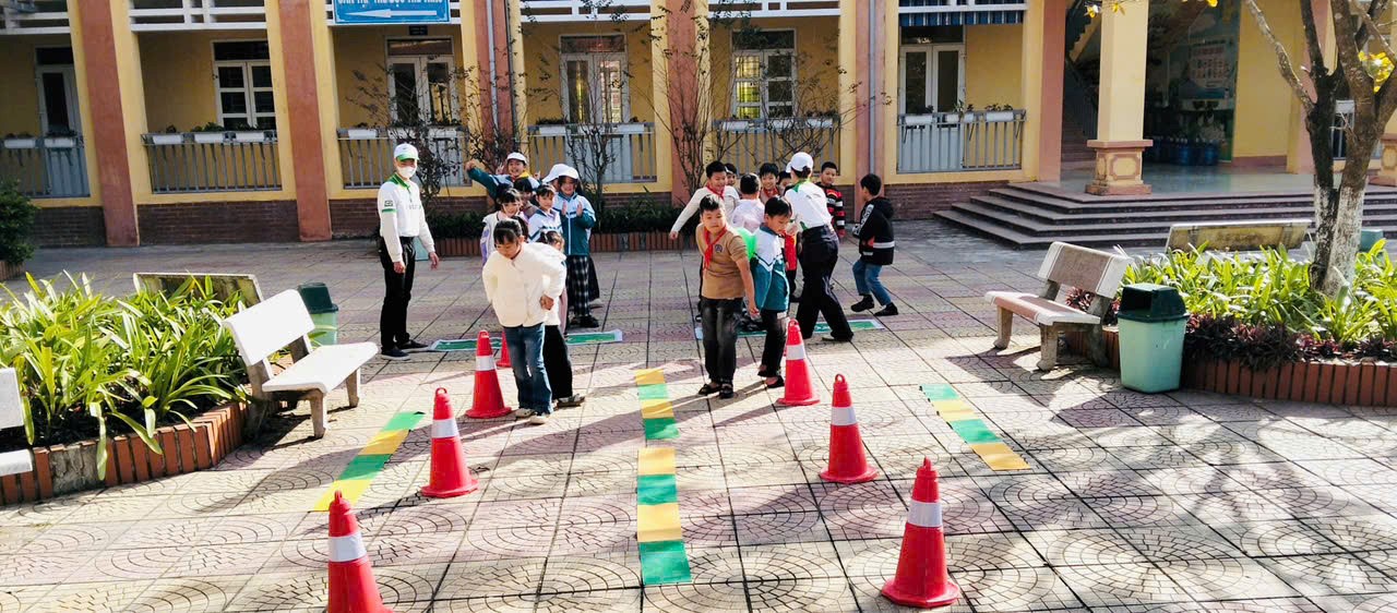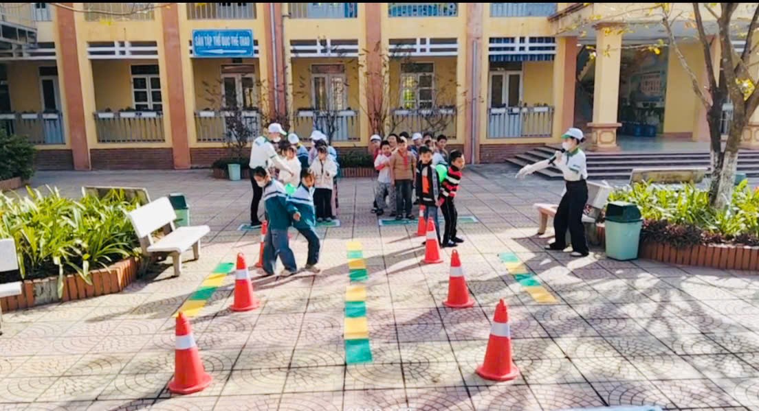 Giờ ra chơi, khuôn viên trường trở nên rộn ràng và ấm áp với những hoạt động trải nghiệm vui tươi. Các hướng dẫn viên tổ chức trò chơi vận động nhẹ nhàng giúp học sinh rèn luyện kỹ năng, tạo không khí hứng khởi trước khi nhận quà. Từng nhóm học sinh được hướng dẫn xếp hàng ngay ngắn, tham gia tuần tự theo đúng quy trình, đảm bảo an toàn cho tất cả các em.