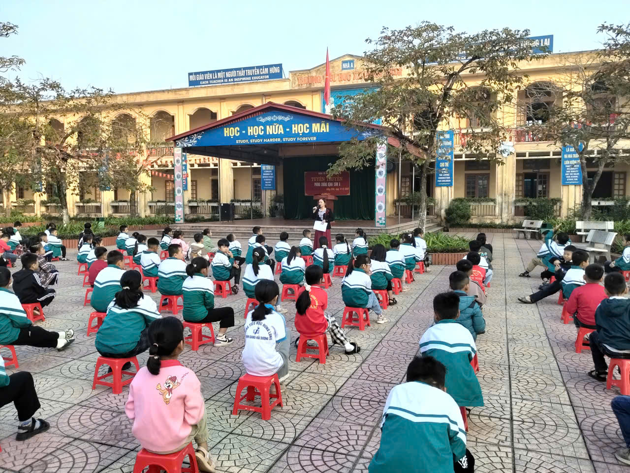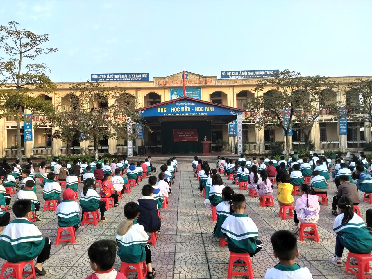 - Hình thức: Tập trung học sinh sân trường, zalo lớp.
