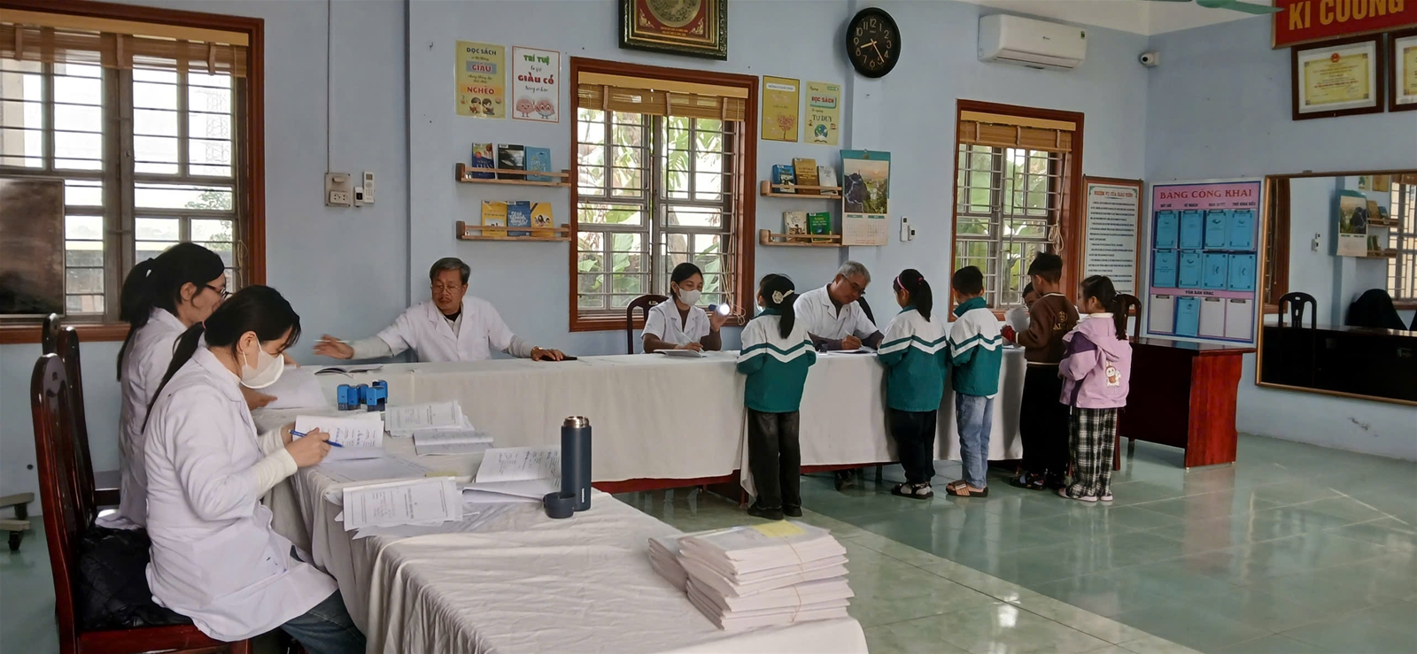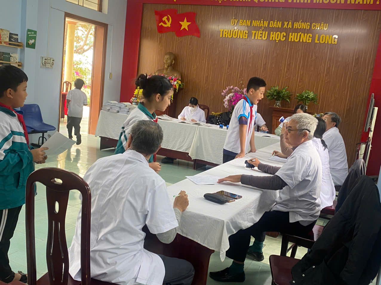 Thực hiện Kế hoạch chăm sóc sức khỏe học sinh năm học 2025 - 2026, nhằm theo dõi và đánh giá tình trạng sức khỏe của học sinh, sáng ngày 17 tháng 12 năm 2025, Trường Tiểu học Hưng Long đã phối hợp với Trung tâm y tế Ninh Giang tổ chức buổi khám sức khỏe định kỳ cho toàn thể học sinh trong nhà trường.