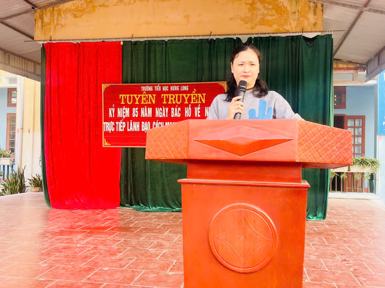 Thực hiện theo công văn số 10352/SGDĐT-VP về việc tuyên truyền kỷ niệm 85 năm Ngày Bác Hồ về nước, trực tiếp lãnh đạo cách mạng Việt Nam. Sáng ngày 12/01/2026 Liên đội Trường tiểu học Hưng Long tổ chức tuyên truyền trong toàn thể cán bộ giáo viên, nhân viên và học sinh toàn trường. Đây là một hoạt động ý nghĩa, giáo dục học sinh bày tỏ lòng biết ơn sâu sắc đối với Chủ tịch Hồ Chí Minh kính yêu.