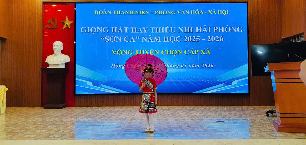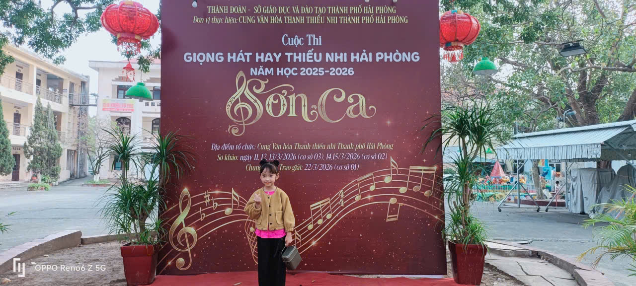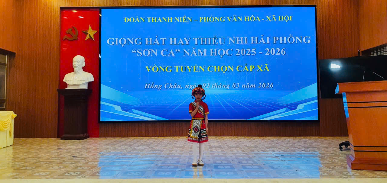 Sau phần thể hiện xuất sắc, em Bùi Bình An đã được Ban tổ chức lựa chọn tham gia vòng sơ khảo Cuộc thi “Giọng hát Sơn ca Hải Phòng” năm học 2025 – 2026.