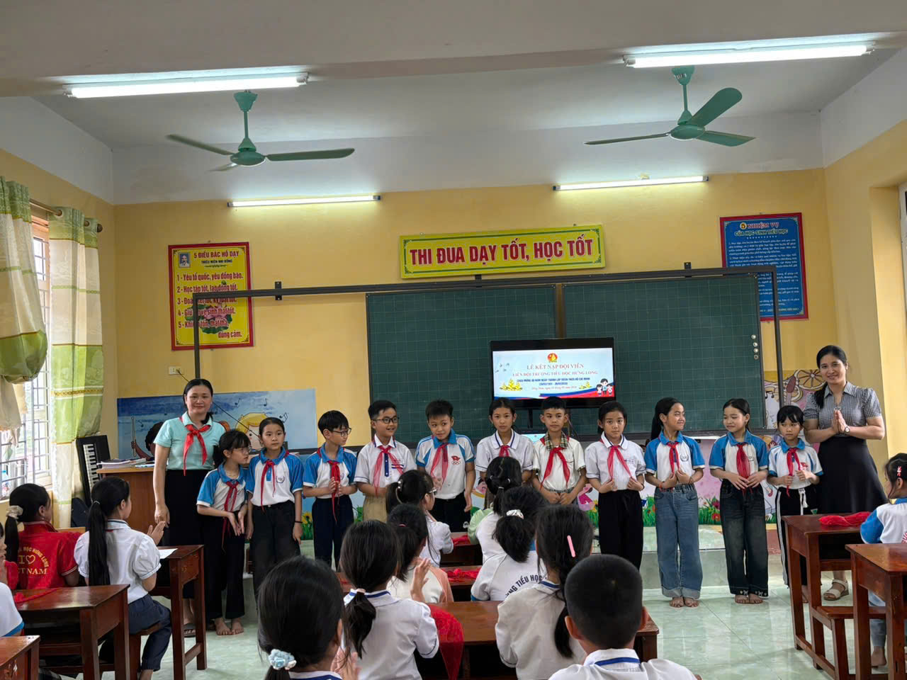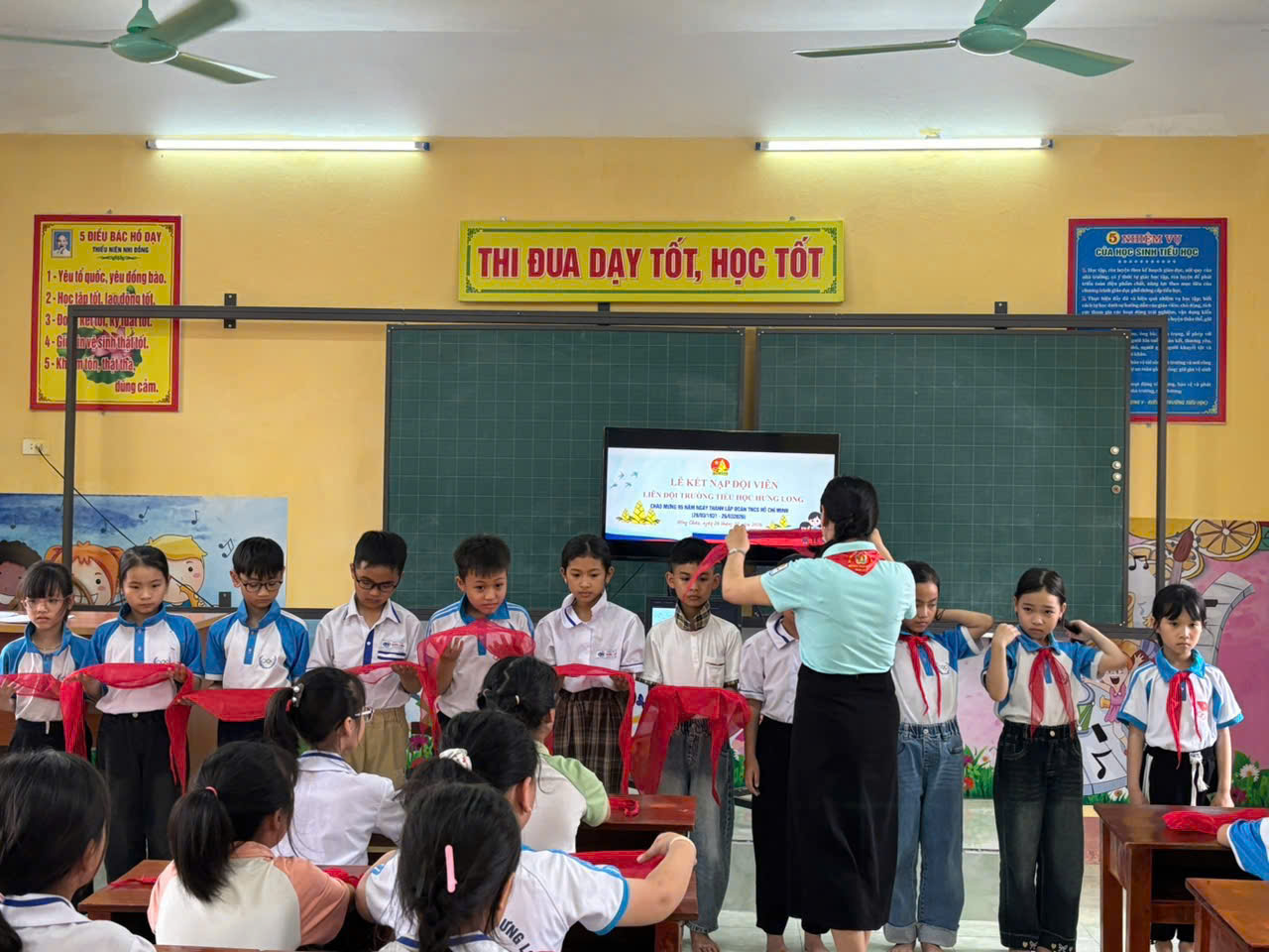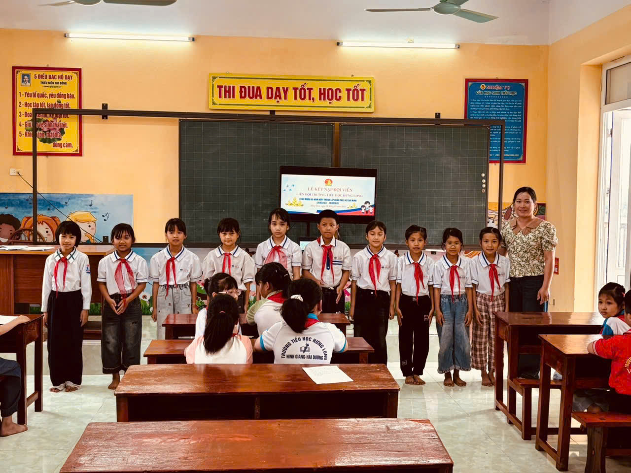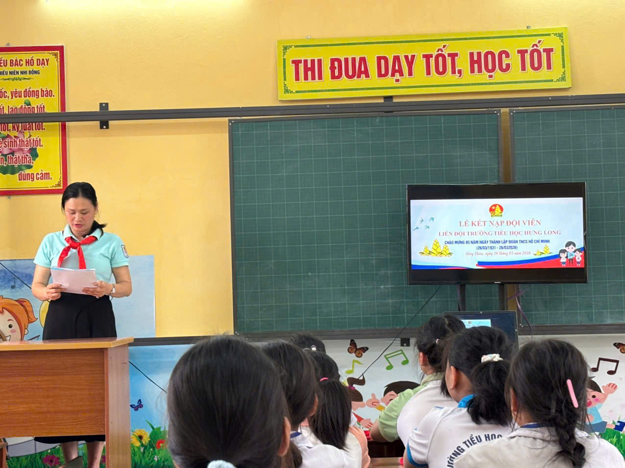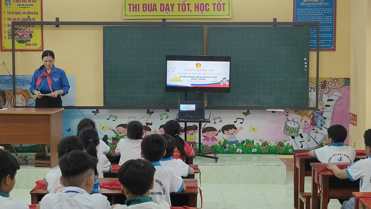 LIÊN ĐỘI TRƯỜNG TIỂU HỌC HƯNG LONG KẾT NẠP ĐỘI VIÊN MỚI NHÂN DỊP KỶ NIỆM 95 NĂM NGÀY THÀNH LẬP ĐOÀN TNCS HỒ CHÍ MINH (26/3/1931 - 26/3/2026) Nhân dịp kỉ niệm 95 năm ngày thành lập Đoàn TNCS Hồ Chí Minh. Liên đội Trường Tiểu học Hưng Long đã long trọng tổ chức lễ kết nạp đội viên mới cho các em nhi đồng ưu tú khối 3,4. Buổi lễ diễn ra trong không khí trang nghiêm, ý nghĩa, góp phần giáo dục truyền thống cho các em học sinh. Những nhi đồng ưu tú đã vinh dự được đứng vào tổ chức Đội Thiếu niên Tiền phong Hồ Chí Minh. Những gương mặt đầy rạng rỡ niềm vui, tự hào khi được đeo trên vai chiếc khăn quàng đỏ thắm. Nghi thức kết nạp Đội được thực hiện đúng theo điều lên Đội, thể hiện sự thiêng liêng và trách nhiệm của người đội viên. Đây là dấu mốc quan trọng, khích lệ các em tiếp tục rèn luyện, phấn đấu trong học tập và sinh hoạt. Hoạt động ý nghĩa này đã góp phần xây dựng Liên đội ngày càng vững mạnh, phát triển toàn diện. Sau đây là một số hình ảnh của buổi lễ kết nạp đội viên mới của Liên đội: