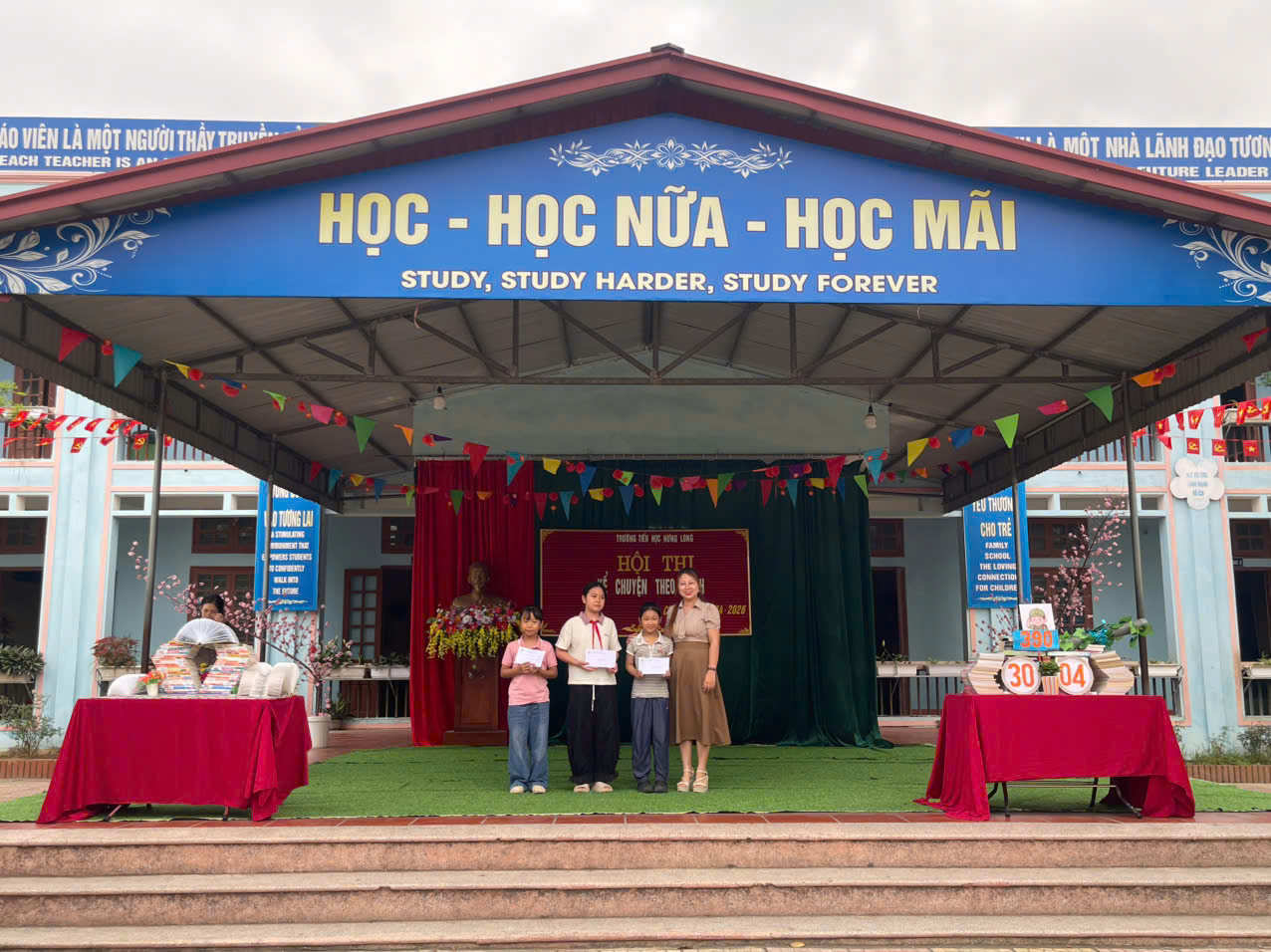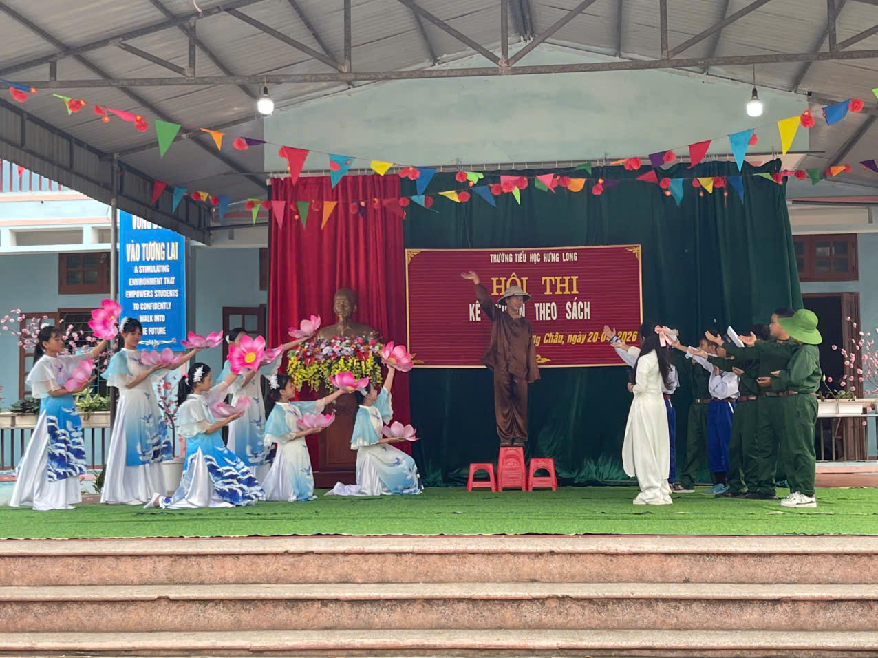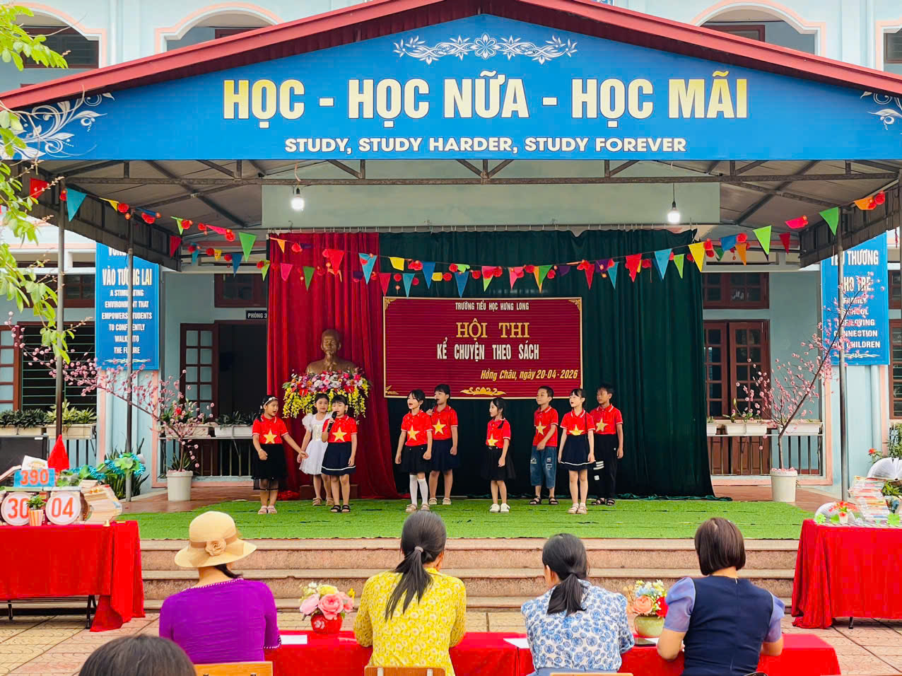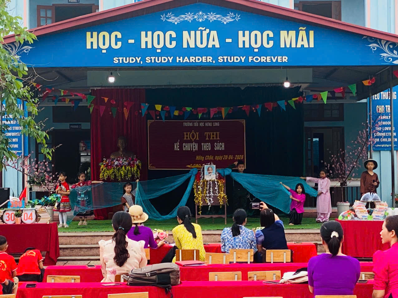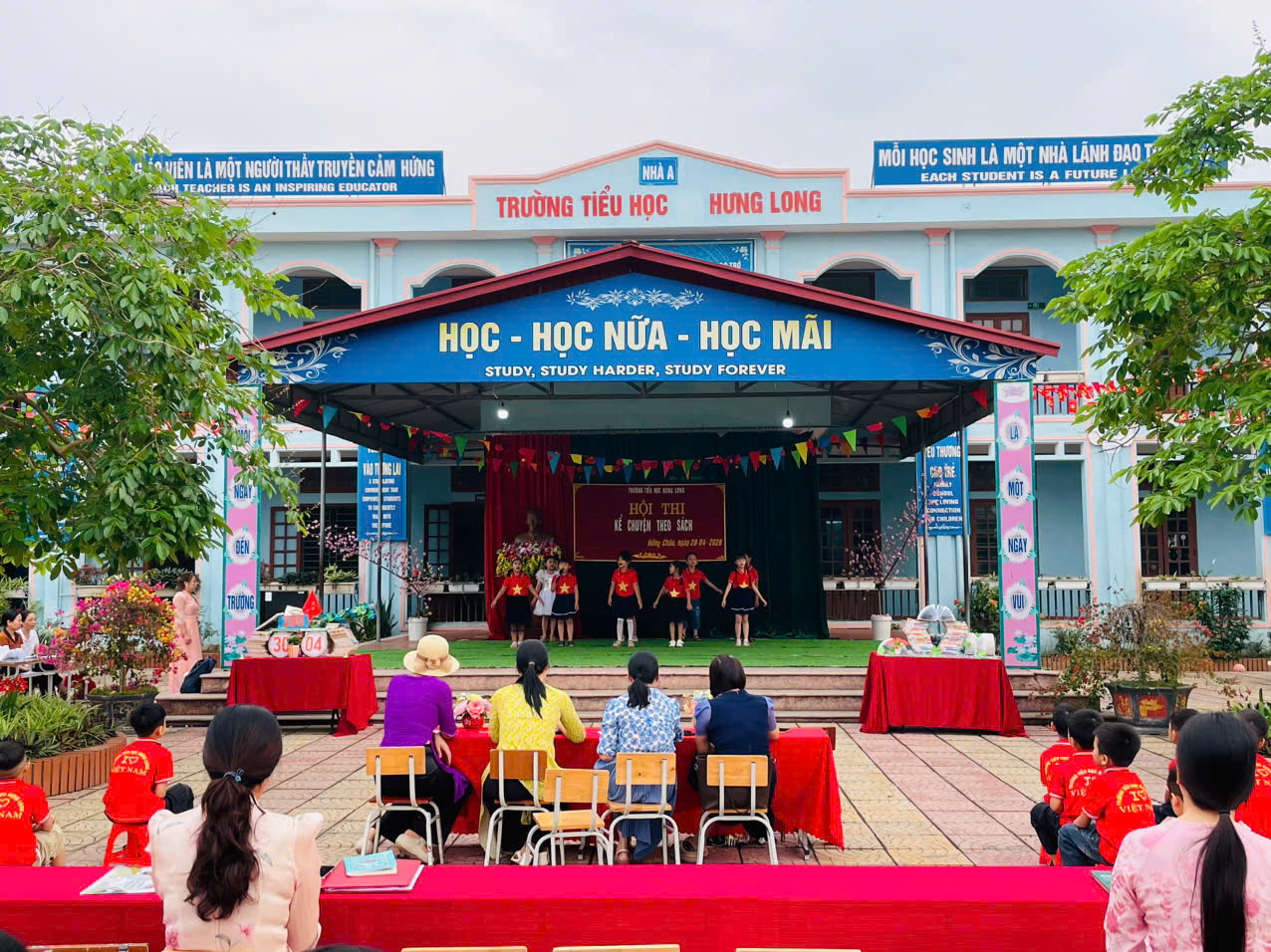 Hưởng ứng Ngày Sách và Văn hoá đọc Việt Nam lần thứ Năm, Trường Tiểu học Hưng Long đã tổ chức thành công Hội thi “Kể chuyện theo sách” với sự tham gia sôi nổi của đông đảo học sinh. Đây là hoạt động ý nghĩa nhằm khơi dậy niềm đam mê đọc sách, bồi dưỡng tâm hồn và phát triển kỹ năng cho học sinh thông qua những câu chuyện giàu giá trị nhân văn.