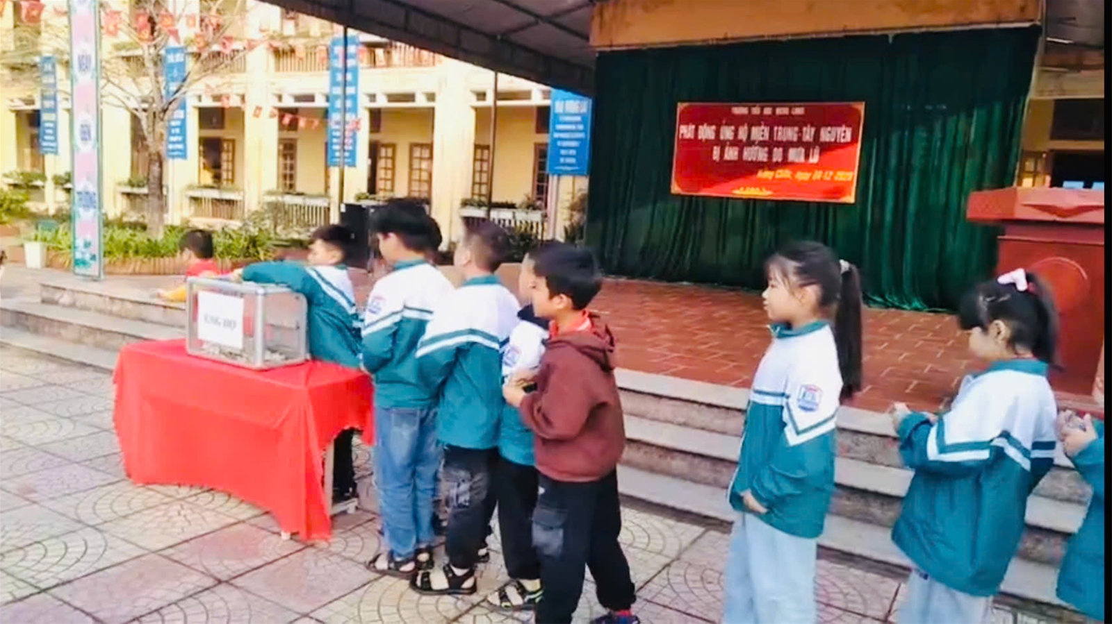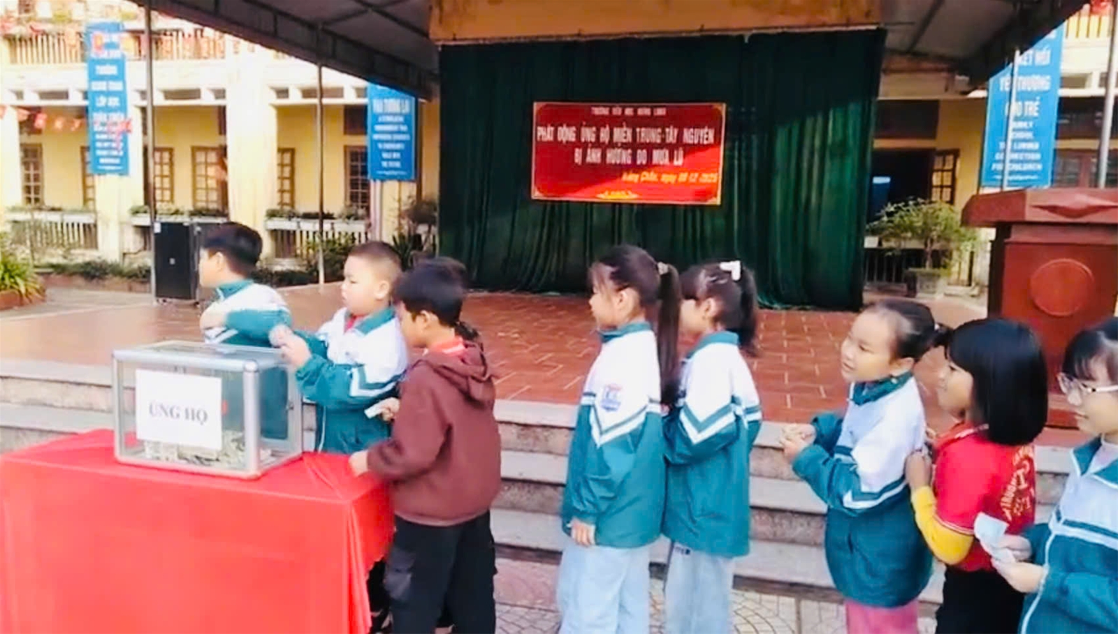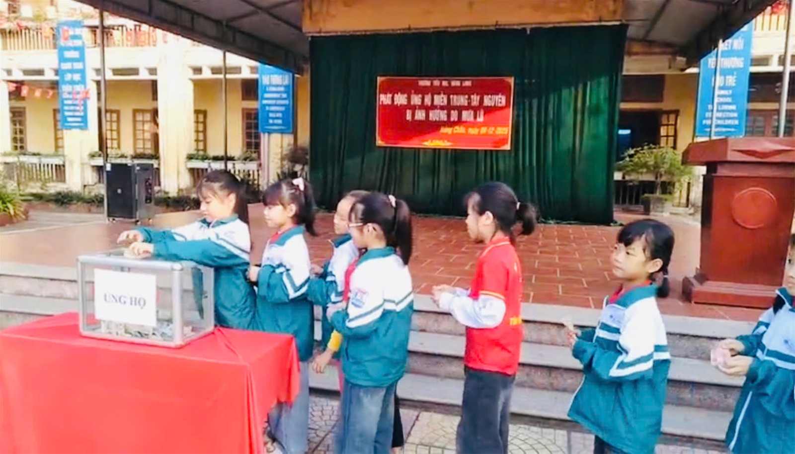 TRƯỜNG TIỂU HỌC HƯNG LONG CHUNG TAY ỦNG HỘ ĐỒNG BÀO, HỌC SINH CÁC TỈNH MIỀN TRUNG VÀ TÂY NGUYÊN KHẮC PHỤC HẬU QUẢ DO MƯA LŨ