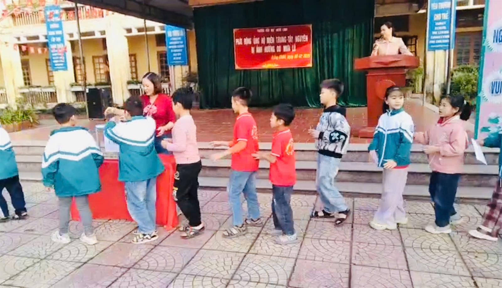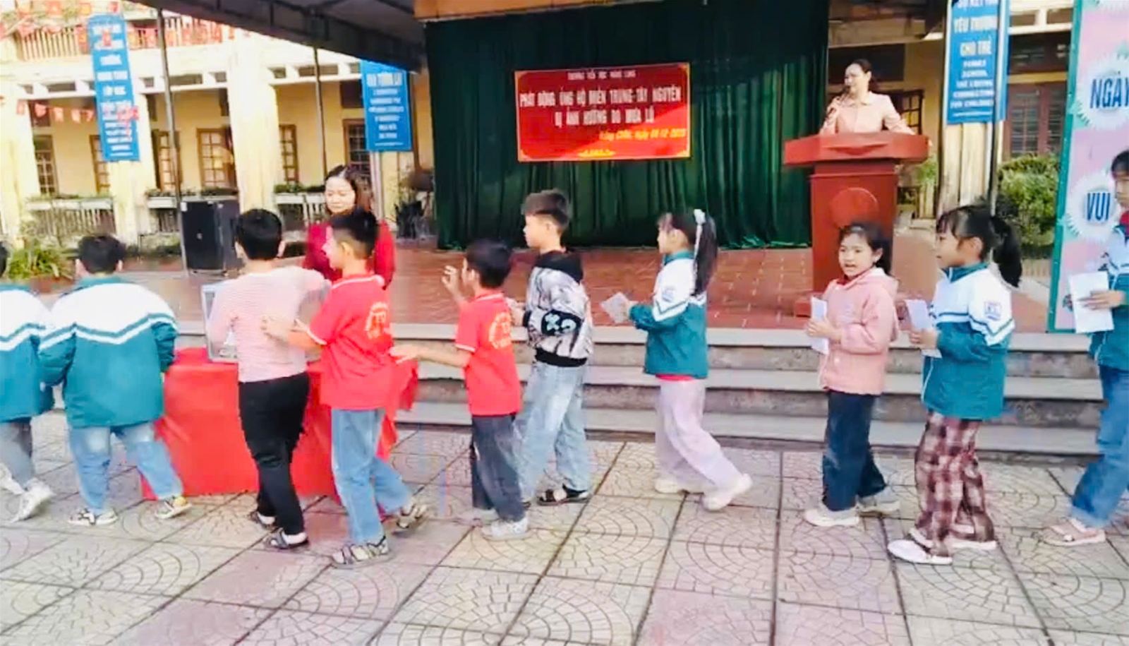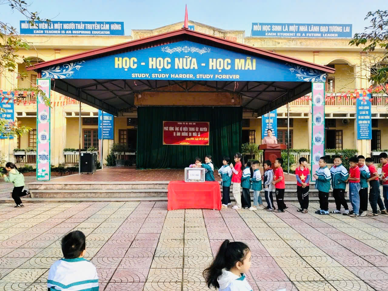 TRƯỜNG TIỂU HỌC HƯNG LONG CHUNG TAY ỦNG HỘ ĐỒNG BÀO, HỌC SINH CÁC TỈNH MIỀN TRUNG VÀ TÂY NGUYÊN KHẮC PHỤC HẬU QUẢ DO MƯA LŨ