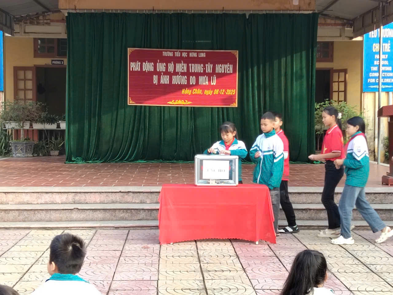 Trường Tiểu học Hưng Long đã tích cực hưởng ứng lời kêu gọi và công văn của Sở Giáo dục và Đào tạo Hải Phòng về việc quyên góp ủng hộ đồng bào miền Trung - Tây Nguyên bị ảnh hưởng bởi mưa lũ. Nhà trường đã triển khai công tác tuyên truyền, vận động cán bộ, giáo viên, nhân viên và học sinh tham gia đóng góp. Hoạt động này nhằm phát huy tinh thần tương thân tương ái và chia sẻ khó khăn với ngành Giáo dục tỉnh Đắk Lắk. Theo tinh thần công văn số 9079/SGDĐT-VP, việc vận động được thực hiện trên tinh thần tự nguyện, không gây áp lực, bảo đảm tính thiết thực. Sáng ngày 08/12/2025 Liên đội Trường tiểu học Hưng Long đã tuyên truyền, phát động và quyên góp ủng hộ trong toàn thể cán bộ giáo viên, nhân viên và học sinh toàn trường. Đây là một hoạt động ý nghĩa, giáo dục học sinh về tình yêu thương, sự đoàn kết và trách nhiệm với cộng đồng.